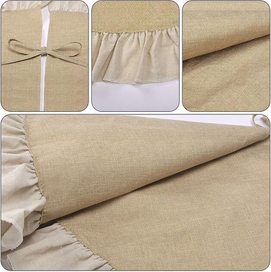48" Burlap Fall Christmas Tree Skirt with Ruffle Border, Beach Farmhouse Tree Skirt Linen Rustic Tree Ornaments for Christmas Thanksgiving Holiday Party Decorations