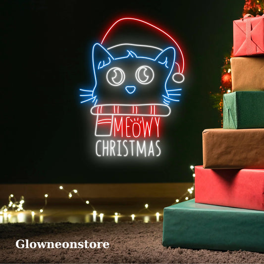 Cat Meowy Christmas Neon Sign, Cat Christmas Led Light, Christmas Neon, Cat Christmas Sign