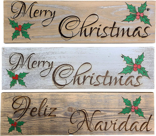 Feliz Navidad - Christmas Engraved Sign on Reclaimed Wood (Weathered, Feliz Navidad)