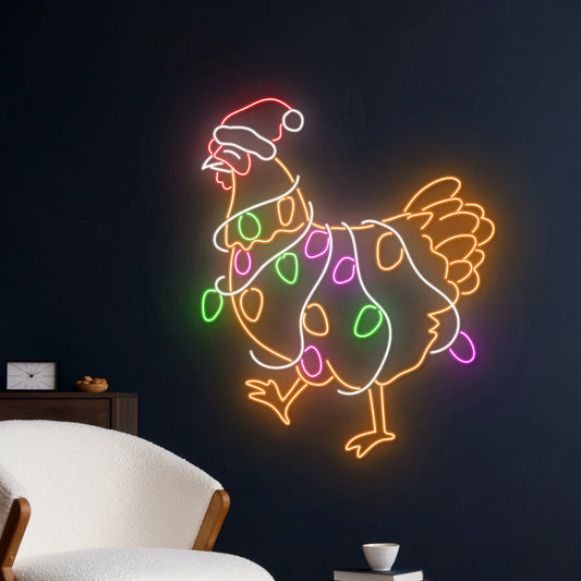 Christmas Chicken Neon Sign, Merry Christmas Rooster Led Sign, Merry Christmas