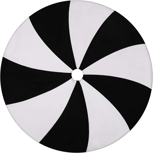 Christmas Halloween Tree Skirt, 48" Large Black and White Lollipop Xmas Tree Rug Mat for 7.5Ft Tree, Black Christmas Decorations Ornaments, Xmas Holiday Party Decor