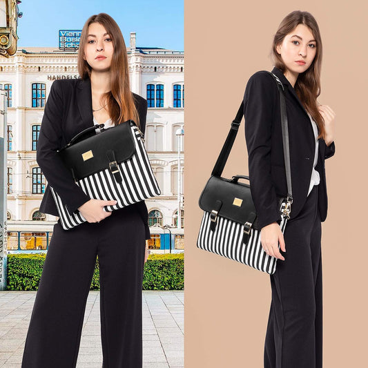 Computer Bag Laptop Bag for Women Cute Laptop Messenger Bag for Work College, Slim-Black, 15.6-Inch