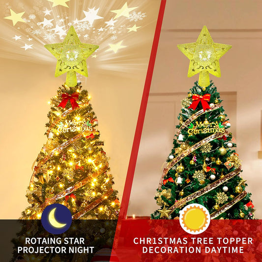 Christmas Tree Topper Star, Rotating Christmas Tree Star Topper Glitter Lighted Gold Star Tree Toppers for Christmas Tree Decorations